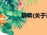 大家好,今天小方来说说一篇关于蔡磷,关于蔡磷部分内容简述的文章,那么现在就为大家来简单介绍下,希望对各位小伙伴们有所帮助。 1、 浏览全文>>