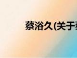 大家好,今天小方来说说一篇关于蔡浴久,关于蔡浴久部分内容简述的文章,那么现在就为大家来简单介绍下,希望对各位小伙伴们有所帮助。 1、 浏览全文>>