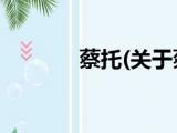 大家好,今天小方来说说一篇关于蔡托,关于蔡托部分内容简述的文章,那么现在就为大家来简单介绍下,希望对各位小伙伴们有所帮助。 1、 浏览全文>>