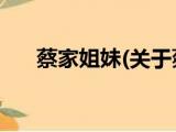 大家好,今天小方来说说一篇关于蔡家姐妹,关于蔡家姐妹部分内容简述的文章,那么现在就为大家来简单介绍下,希望对各位小伙伴们有所帮助。 浏览全文>>