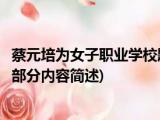 大家好,今天小方来说说一篇关于蔡元培为女子职业学校题字,关于蔡元培为女子职业学校题字部分内容简述的文章,那么现在就为大家来简单介绍 浏览全文>>