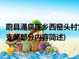 大家好,今天小方来说说一篇关于蔚县涌泉庄乡西窑头村党支部,关于蔚县涌泉庄乡西窑头村党支部部分内容简述的文章,那么现在就为大家来简单 浏览全文>>