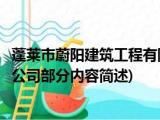 大家好,今天小方来说说一篇关于蓬莱市蔚阳建筑工程有限公司,关于蓬莱市蔚阳建筑工程有限公司部分内容简述的文章,那么现在就为大家来简单 浏览全文>>
