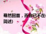 大家好,今天小方来说说一篇关于蓦然回首,而你已不在,关于蓦然回首,而你已不在部分内容简述的文章,那么现在就为大家来简单介绍下,希望 浏览全文>>