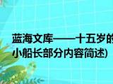大家好,今天小方来说说一篇关于蓝海文库——十五岁的小船长,关于蓝海文库——十五岁的小船长部分内容简述的文章,那么现在就为大家来简单 浏览全文>>