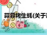 大家好,今天小方来说说一篇关于蒜茸生蚝,关于蒜茸生蚝部分内容简述的文章,那么现在就为大家来简单介绍下,希望对各位小伙伴们有所帮助。 浏览全文>>