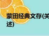 大家好,今天小方来说说一篇关于蒙田别传,关于蒙田别传部分内容简述的文章,那么现在就为大家来简单介绍下,希望对各位小伙伴们有所帮助。 浏览全文>>