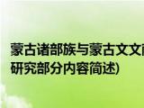 大家好,今天小方来说说一篇关于蒙古诸部族与蒙古文文献研究,关于蒙古诸部族与蒙古文文献研究部分内容简述的文章,那么现在就为大家来简单 浏览全文>>