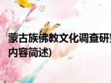 大家好,今天小方来说说一篇关于蒙古族佛教文化调查研究,关于蒙古族佛教文化调查研究部分内容简述的文章,那么现在就为大家来简单介绍下, 浏览全文>>