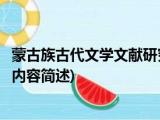 大家好,今天小方来说说一篇关于蒙古族古代文学文献研究,关于蒙古族古代文学文献研究部分内容简述的文章,那么现在就为大家来简单介绍下, 浏览全文>>