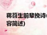 大家好,今天小方来说说一篇关于蒋苕生前辈挽诗,关于蒋苕生前辈挽诗部分内容简述的文章,那么现在就为大家来简单介绍下,希望对各位小伙伴 浏览全文>>