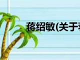 大家好,今天小方来说说一篇关于蒋绍敏,关于蒋绍敏部分内容简述的文章,那么现在就为大家来简单介绍下,希望对各位小伙伴们有所帮助。 1、 浏览全文>>