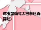 大家好,今天小方来说说一篇关于蒋玉堃杨式太极拳述真,关于蒋玉堃杨式太极拳述真部分内容简述的文章,那么现在就为大家来简单介绍下,希望 浏览全文>>