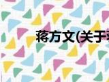 大家好,今天小方来说说一篇关于蒋文中,关于蒋文中部分内容简述的文章,那么现在就为大家来简单介绍下,希望对各位小伙伴们有所帮助。 1、 浏览全文>>