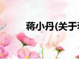 大家好,今天小方来说说一篇关于蒋小丹,关于蒋小丹部分内容简述的文章,那么现在就为大家来简单介绍下,希望对各位小伙伴们有所帮助。 1、 浏览全文>>