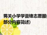 大家好,今天小方来说说一篇关于蒋关小学学雷锋志愿服务队,关于蒋关小学学雷锋志愿服务队部分内容简述的文章,那么现在就为大家来简单介绍 浏览全文>>