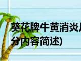 大家好,今天小方来说说一篇关于葵花牌牛黄消炎片,关于葵花牌牛黄消炎片部分内容简述的文章,那么现在就为大家来简单介绍下,希望对各位小 浏览全文>>