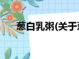 大家好,今天小方来说说一篇关于葱白乳粥,关于葱白乳粥部分内容简述的文章,那么现在就为大家来简单介绍下,希望对各位小伙伴们有所帮助。 浏览全文>>