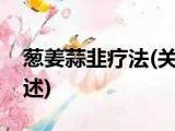 大家好,今天小方来说说一篇关于葱姜蒜韭疗法,关于葱姜蒜韭疗法部分内容简述的文章,那么现在就为大家来简单介绍下,希望对各位小伙伴们有 浏览全文>>