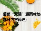 大家好,今天小方来说说一篇关于葡萄“双限”避雨栽培技术,关于葡萄“双限”避雨栽培技术部分内容简述的文章,那么现在就为大家来简单介绍 浏览全文>>