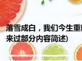 大家好,今天小方来说说一篇关于落雪成白,我们今生重新来过,关于落雪成白,我们今生重新来过部分内容简述的文章,那么现在就为大家来简单 浏览全文>>