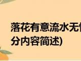 大家好,今天小方来说说一篇关于落花有意流水无情,关于落花有意流水无情部分内容简述的文章,那么现在就为大家来简单介绍下,希望对各位小 浏览全文>>