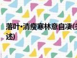 大家好,今天小方来说说一篇关于落叶·清瘦寒林意自凄,关于落叶·清瘦寒林意自凄部分内容简述的文章,那么现在就为大家来简单介绍下,希望 浏览全文>>