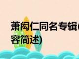 大家好,今天小方来说说一篇关于萧闳仁同名专辑,关于萧闳仁同名专辑部分内容简述的文章,那么现在就为大家来简单介绍下,希望对各位小伙伴 浏览全文>>