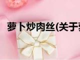 大家好,今天小方来说说一篇关于萝卜炒肉丝,关于萝卜炒肉丝部分内容简述的文章,那么现在就为大家来简单介绍下,希望对各位小伙伴们有所帮 浏览全文>>