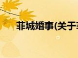 大家好,今天小方来说说一篇关于菲城婚事,关于菲城婚事部分内容简述的文章,那么现在就为大家来简单介绍下,希望对各位小伙伴们有所帮助。 浏览全文>>