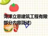 大家好,今天小方来说说一篇关于菏泽立恩建筑工程有限公司,关于菏泽立恩建筑工程有限公司部分内容简述的文章,那么现在就为大家来简单介绍 浏览全文>>
