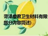 大家好,今天小方来说说一篇关于菏泽康君卫生材料有限公司,关于菏泽康君卫生材料有限公司部分内容简述的文章,那么现在就为大家来简单介绍 浏览全文>>