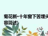 大家好,今天小方来说说一篇关于菊花新·十年窗下苦埋头,关于菊花新·十年窗下苦埋头部分内容简述的文章,那么现在就为大家来简单介绍下, 浏览全文>>