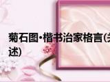 大家好,今天小方来说说一篇关于菊石图·楷书治家格言,关于菊石图·楷书治家格言部分内容简述的文章,那么现在就为大家来简单介绍下,希望 浏览全文>>
