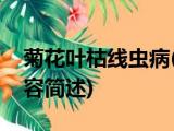 大家好,今天小方来说说一篇关于菊花叶枯线虫病,关于菊花叶枯线虫病部分内容简述的文章,那么现在就为大家来简单介绍下,希望对各位小伙伴 浏览全文>>