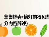 大家好,今天小方来说说一篇关于莺集林春·恰灯前得见些些,关于莺集林春·恰灯前得见些些部分内容简述的文章,那么现在就为大家来简单介绍 浏览全文>>