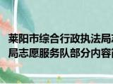 大家好,今天小方来说说一篇关于莱阳市综合行政执法局志愿服务队,关于莱阳市综合行政执法局志愿服务队部分内容简述的文章,那么现在就为大 浏览全文>>