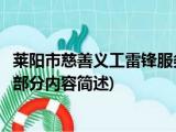 大家好,今天小方来说说一篇关于莱阳市慈善义工雷锋服务队,关于莱阳市慈善义工雷锋服务队部分内容简述的文章,那么现在就为大家来简单介绍 浏览全文>>