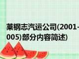大家好,今天小方来说说一篇关于莱钢志汽运公司,2001-2005,关于莱钢志汽运公司,2001-2005部分内容简述的文章,那么现在就为大家来简单介 浏览全文>>