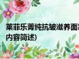 大家好,今天小方来说说一篇关于莱菲乐菁纯抗皱滋养面霜,关于莱菲乐菁纯抗皱滋养面霜部分内容简述的文章,那么现在就为大家来简单介绍下, 浏览全文>>