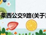 大家好,今天小方来说说一篇关于莱西公交9路,关于莱西公交9路部分内容简述的文章,那么现在就为大家来简单介绍下,希望对各位小伙伴们有所 浏览全文>>