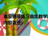 大家好,今天小方来说说一篇关于莱蒙钢琴练习曲集教学版,关于莱蒙钢琴练习曲集教学版部分内容简述的文章,那么现在就为大家来简单介绍下, 浏览全文>>