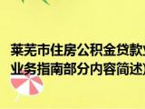 大家好,今天小方来说说一篇关于莱芜市住房公积金贷款业务指南,关于莱芜市住房公积金贷款业务指南部分内容简述的文章,那么现在就为大家来 浏览全文>>