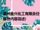大家好,今天小方来说说一篇关于莱州金兴化工有限责任公司,关于莱州金兴化工有限责任公司部分内容简述的文章,那么现在就为大家来简单介绍 浏览全文>>
