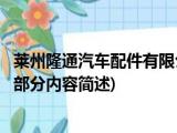 大家好,今天小方来说说一篇关于莱州隆通汽车配件有限公司,关于莱州隆通汽车配件有限公司部分内容简述的文章,那么现在就为大家来简单介绍 浏览全文>>