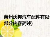 大家好,今天小方来说说一篇关于莱州沃邦汽车配件有限公司,关于莱州沃邦汽车配件有限公司部分内容简述的文章,那么现在就为大家来简单介绍 浏览全文>>