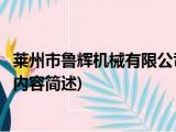 大家好,今天小方来说说一篇关于莱州市鲁辉机械有限公司,关于莱州市鲁辉机械有限公司部分内容简述的文章,那么现在就为大家来简单介绍下, 浏览全文>>