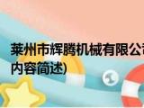 大家好,今天小方来说说一篇关于莱州市辉腾机械有限公司,关于莱州市辉腾机械有限公司部分内容简述的文章,那么现在就为大家来简单介绍下, 浏览全文>>