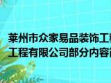 大家好,今天小方来说说一篇关于莱州市众家易品装饰工程有限公司,关于莱州市众家易品装饰工程有限公司部分内容简述的文章,那么现在就为大 浏览全文>>