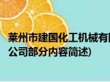 大家好,今天小方来说说一篇关于莱州市建国化工机械有限公司,关于莱州市建国化工机械有限公司部分内容简述的文章,那么现在就为大家来简单 浏览全文>>